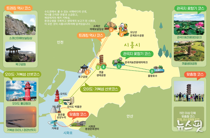 환경에 관심이 있다거나 본격적인 해양레저를 즐겨보고 싶은 사람들은 수시로 운영되는 맞춤형 코스에 주목해 보자. 시흥시가 보유하고 있는 다양한 관광자원을 테마별로 묶어 운영되는 맞춤형코스는 15인 이상 단체가 신청하면 수시로 운영된다. 방문해볼 가치가 있는 지역의 특별한 장소를 몇 곳을 소개한다.