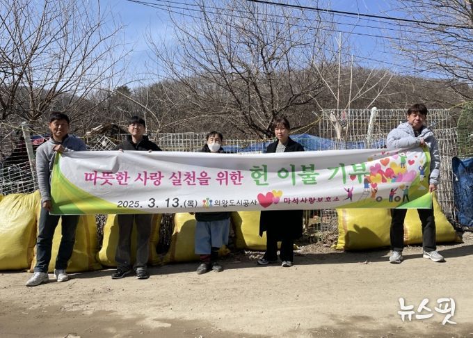 (뉴스핏 = 김수진 기자) 의왕도시공사는 13일 바라산자연휴양림에서 ‘따뜻한 사랑 실천을 위한 헌 이불 기부’행사를 진행했다.