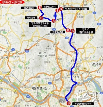 이번에 신설되는 광역버스 노선은 양주 광적면을 기점으로 백석읍, 회천지구, 의정부 민락지구 등을 거쳐 서울 잠실역이 종점이며 오는 2023년 상반기 운행을 시작할 예정이다.