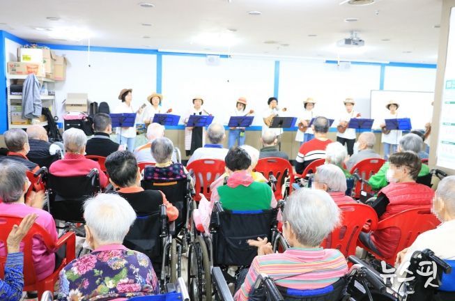 이날 재능나눔 우쿨렐레·음악치료봉사단은 그동안 갈고 닦은 우쿨렐레, 팬플루트, 하모니카, 플루트, 오카리나 등 다양한 악기 연주와 어버이날을 기념하여 감사의 마음을 담은 노래와 율동을 선보여 큰 박수와 환호를 받았다.