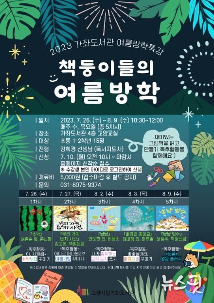 (뉴스핏 = 박선화 기자) 고양특례시 가좌도서관은 오는 7월 26일부터 8월 9일까지 매주 수요일과 목요일에 어린이 여름방학 독서 프로그램 ‘책둥이들의 여름방학’을 운영한다.