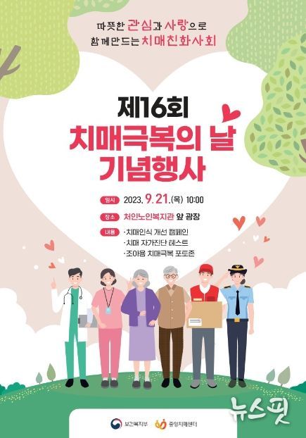 처인구보건소는 21일 처인노인복지관 앞에서 치매 인식 개선을 위한 캠페인을 진행하고 참가자를 대상으로 치매 자가 진단 테스트를 제공한다. 조아용과 함께하는 치매 극복 포토존도 운영한다.