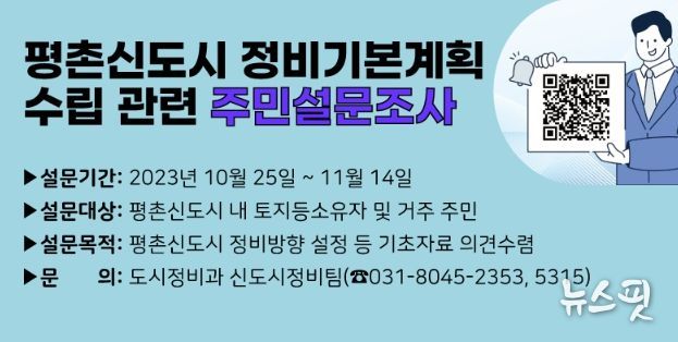 조사 결과는 평촌신도시 정비기본계획 수립을 위한 용역 기초자료로 활용되며, 설문조사는 이날부터 다음달 14일까지 진행한다.
