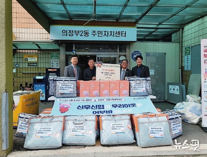 (뉴스핏 = 김호 기자) 의정부시 의정부2동주민센터는 11월 3일 신우신협이 취약계층 23가정에 따뜻한 겨울나기를 위한 전기장판, 이불 등 난방용품과 생필품을 담은 어부바박스 10개를 전달했다고 밝혔다.