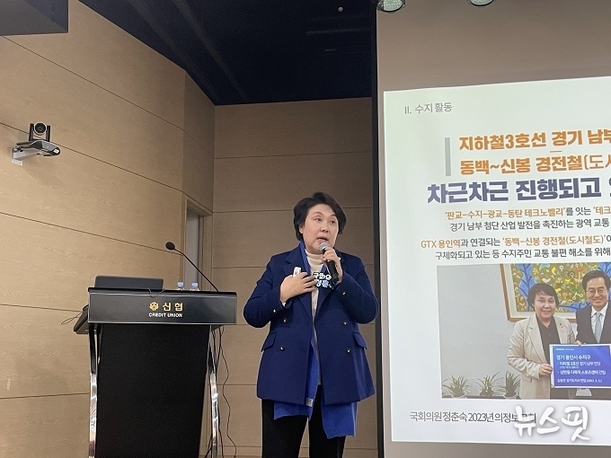 (뉴스핏 = 박선화 기자) 더불어민주당 정춘숙 국회의원(경기 용인시병)이 지난 21일 21대 국회의원으로서 3년 7개월 간의 의정활동 성과를 지역주민들에게 보고하는 의정보고회를 수지신협 문화센터(용인시 수지구 동천동)에서 개최했다.