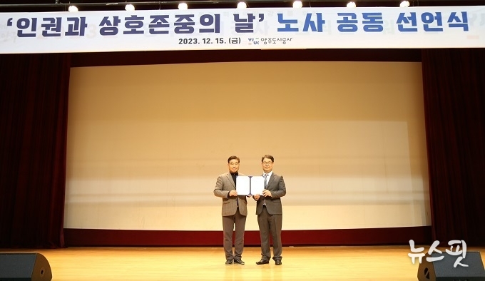 (뉴스핏 = 박선화 기자) 양주도시공사는 지난 15일 ‘인권과 상호존중의 날’선언식을 개최해 인권 증진과 상호존중 문화 확산을 위한 실천의지를 다졌다.