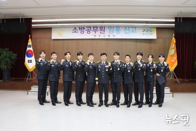 이날 임용식은 임용신고 및 기념촬영이 진행됐으며, 임용식에는 강덕원 양주소방서장, 각 과(단)장 및 팀장이 참석해 신규 소방공무원들의 새로운 출발을 축하 및 격려하고 영광스러운 임용의 기쁨을 함께 나눴다.