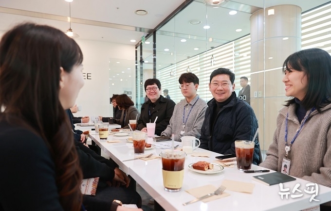 이 시장은 청사 내 새롭게 마련된 공간에서 새내기 공직자들과 격의없이 소통하면서 업무에 어려운 점이 없는지 애로사항을 청취하고 올 한해 활약을 응원하기 위해 이 자리를 마련했다.