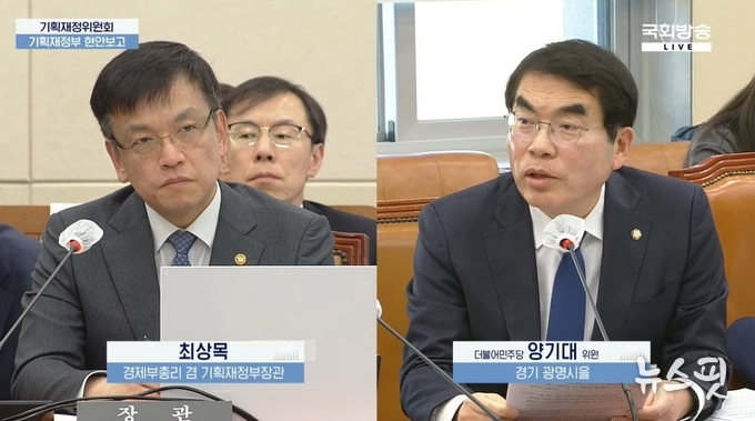 양 의원은 이날 최상목 경제부총리겸 기획재정부 장관에게 레고랜드, 태영건설 사태와 관련해 "정부가 유동성 공급이나 채권단 설득 등의 문제를 미루려고만 든다"며 "부동산 PF 문제에 대해 폭탄돌리기식 조치로 일관하고 있다"고 정부의 조치를 비판했다.
