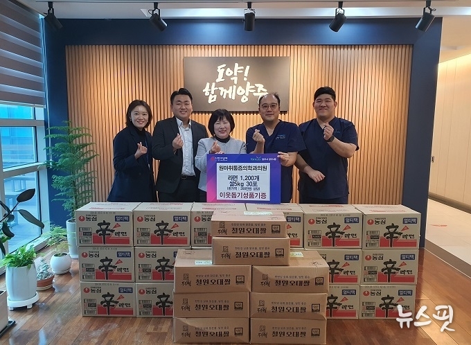 (뉴스핏 = 박선화 기자) 양주시 양주2동은 지난 11일 원마취통증의학과의원(원장 김도원)에서 2024년 새해를 맞이해 어려운 이웃에게 전달해 달라며 라면 1200개와 쌀 5kg 30포를 기부했다고 밝혔다.