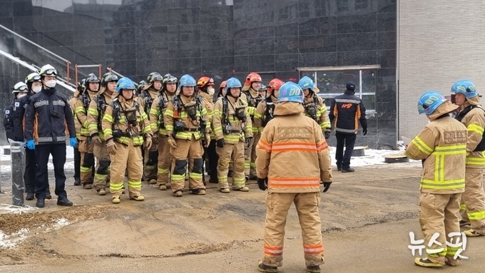 (뉴스핏 = 박선화 기자) 경기 용인소방서는 지난 11일 김량장동 소재의 준공을 앞둔 신축아파트 건설현장에서 아파트 화재에 대비하고자 화재 대응 및 구조훈련을 실시했다고 밝혔다.