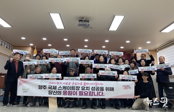 (뉴스핏 = 박선화 기자) 양주시 양주1동은 29일 양주1동 행정복지센터 3층 회의실에서 양주1동노인회(분회장 조병화)와 함께 국제스케이트장 유치를 기원하는 릴레이 응원 캠페인을 펼쳤다.