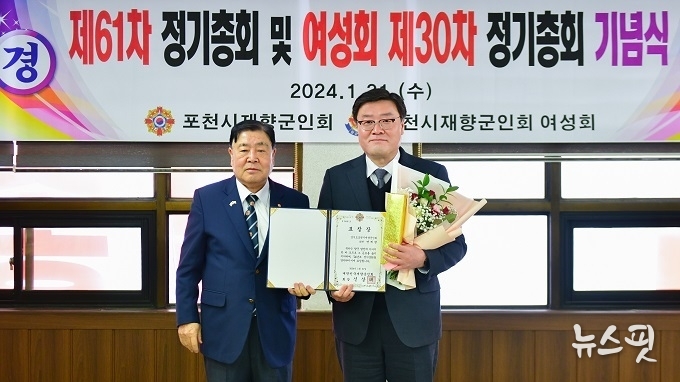 (뉴스핏 = 박선화 기자) 포천시의회 연제창 의원은 31일 포천시재향군인회 향군회관에서 대한민국재향군인회의 표창을 수여 받았다.
