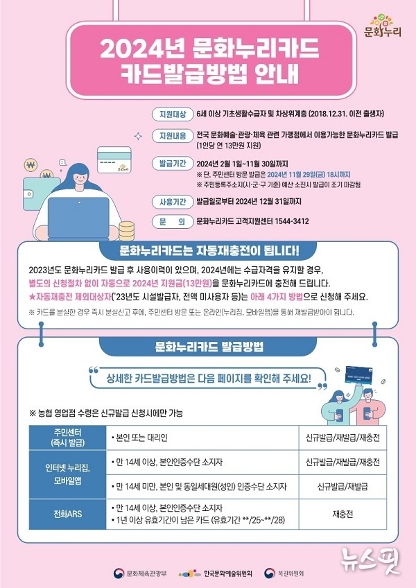 (뉴스핏 = 박선화 기자) 양주시가 ‘2024년 통합문화이용권(이하 문화누리카드) 발급’을 시작한다고 1일 밝혔다.