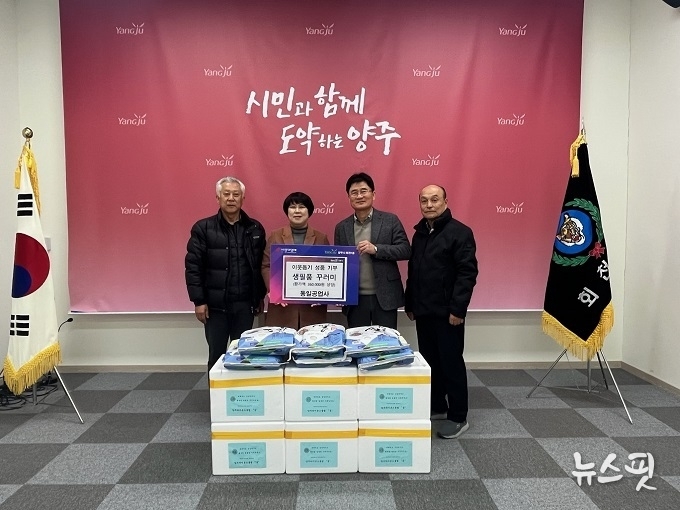 (뉴스핏 = 박선화 기자) 양주시 회천1동이 지난 1일 관내 ㈜동일자동차공업(대표 박병민)에서 행정복지센터를 방문해 관내 경제적 어려움에 있는 이웃을 위해 써달라며 백미 10kg 6포와 생필품 꾸러미 6세트(환가액 36만 원 상당)를 기부했다고 밝혔다.