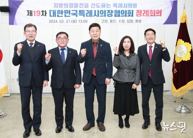 이날 회의에는 윤원균 의장을 비롯해 김영식 고양특례시의회 의장, 김기정 수원특례시의회 의장, 김이근 창원특례시의회 의장, 김경희 화성시의회 의장 등 관계자들이 참석했다.
