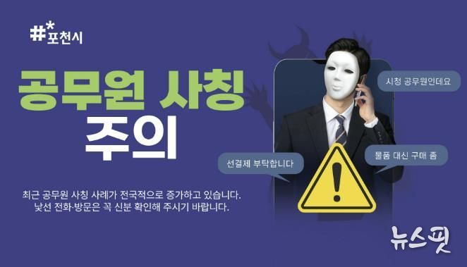 (뉴스핏 = 김호 기자) 포천시는 최근 공무원을 사칭한 물품 구매 사기 행위가 재차 발생함에 따라, 시민과 관내 업체들에 각별한 주의를 당부했다.