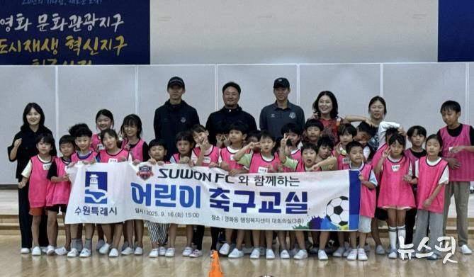 (뉴스핏 = 김호 기자) 수원시 장안구 영화동은 지난 16일, 영화동 행정복지센터에서 수원FC와 함께하는 ‘어린이 축구교실 일일특강’을 진행했다.