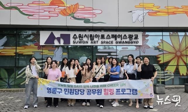 (뉴스핏 = 김호 기자) 수원시 영통구는 지난 16일, 수원시립아트스페이스광교에서 영통구 민원담당 공무원을 대상으로 -오늘은 힐링 DAY! 나를 위해 Cheer up!- 영통구 민원담당 공무원 마음치유를 위한 힐링 프로그램을 진행했다. 이번 프로그램은 반복적인 민원응대에 지친 공무원들이 일상에서 벗어나 몸과 마음의 여유를 되찾을 수 있도록 기획됐다.