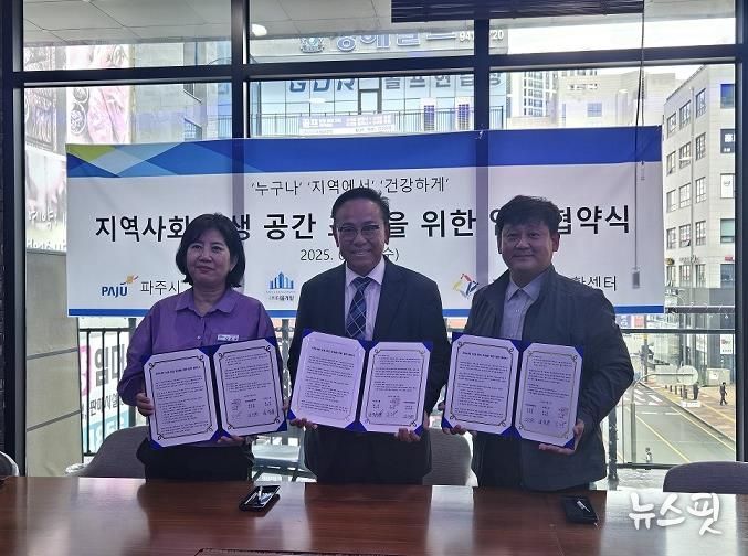 (뉴스핏 = 김호 기자) 파주시와 파주지역자활센터가 지난 17일, 다율타워(3층) 회의실에서 다율그룹과 함께 ‘지역사회 상생 공간 조성 업무협약’을 체결했다.