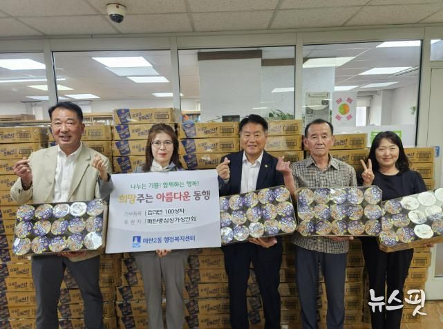 (뉴스핏 = 김호 기자) 수원시 영통구 매탄2동은 지난 22일, 추석 명절을 맞이하여 매탄중심상가 상인회와 함께 컵라면 100상자 전달식을 진행했다.