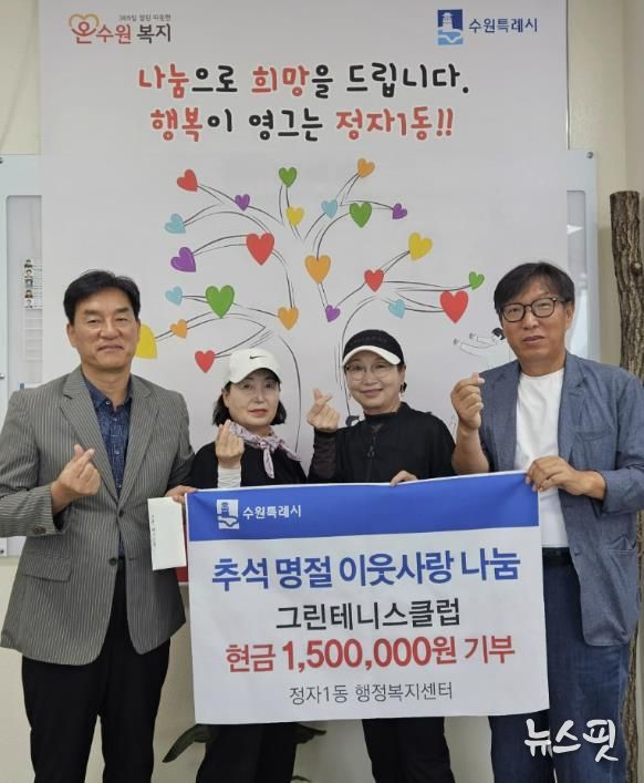 (뉴스핏 = 김호 기자) 수원시 장안구 정자1동은 그린테니스클럽이 지난 23일, 추석 명절을 맞아 관내 취약계층을 돕기 위해 현금 150만 원을 기부했다고 밝혔다.