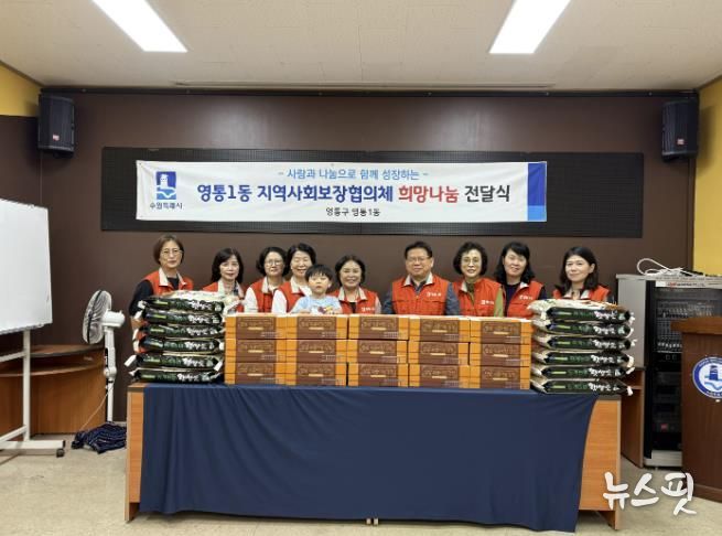 (뉴스핏 = 김호 기자) 지난 24일 수원특례시 영통구 영통1동 행정복지센터에서 추석 명절을 맞아 지역사회보장협의체 주관 이웃돕기 전달식을 진행했다.