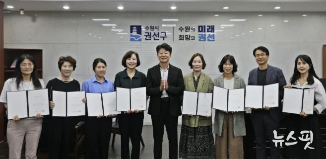 (뉴스핏 = 김호 기자) 수원시 권선구는 지난 24일, 권선구청 구청장실에서 김종석 구청장을 비롯해 행정의 최일선에서 헌신·봉사하고 있는 통장 8명이 참석한 가운데 ‘2025년 하반기 통장자녀 장학금’전달식을 가졌다.