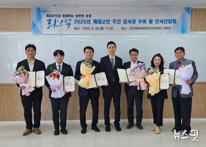 (뉴스핏 = 김수진 기자) 경기북부보훈지청 제대군인지원센터는 지난 29일 오전 11시, 센터 교육장에서 ‘2025년 제대군인 주간 기념 고용우수기업 감사장 수여식 및 인사간담회’ 를 개최했다.