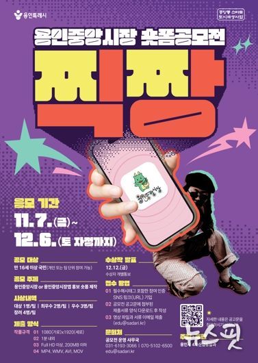 시 관계자는 “이번 숏폼 공모전은 시민이 직접 용인중앙시장의 매력과 전통문화를 재발견하고, 디지털 감성으로 전통시장 브랜드를 확산시키는 계기가 될 것”이라며 “청년들의 창의력으로 중앙동 도시재생 사업이 더욱 풍성하게 실현되길 기대한다”고 말했다.