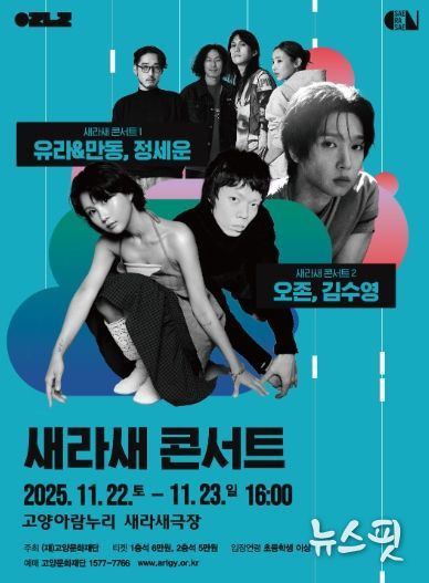 (뉴스핏 = 김수진 기자) (재)고양문화재단은 소극장 기획공연 시리즈 ‘2025 새라새 ON 시리즈’의 11월 프로그램으로, 감각적인 싱어송라이터들을 만날 수 있는 '새라새 콘서트 1~2'를 11월 22일과 23일 양일간 고양아람누리 새라새극장에서 개최한다.