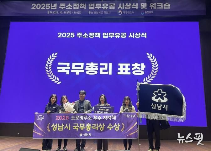 (뉴스핏 = 김호 기자) 성남시는 행정안전부가 주관한 2025년 주소정책 업무 평가에서 도로명주소 활성화 분야 우수 지자체로 선정돼 국무총리 기관표창을 수상했다고 19일 밝혔다.