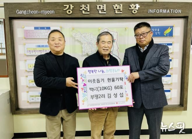 배인수 강천면장은 “모두가 어려운 시기임에도 불구하고 매년 변함없는 이웃사랑을 실천해 주시는 김성섭 님께 진심으로 감사드린다”며 “기탁해 주신 소중한 쌀은 기부자의 따뜻한 마음을 담아 관내 복지 사각지대 및 소외계층에게 정성껏 전달하겠다”고 말했다.