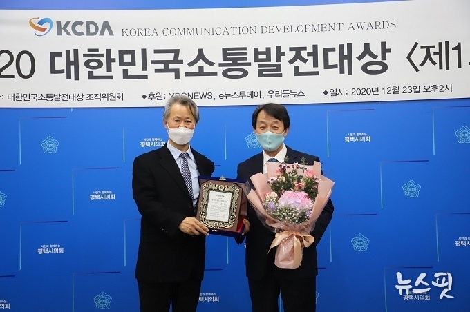 (뉴스핏 = 박선화 기자) 평택시의회 홍선의 의장을 비롯한 시의원 10명이 지난 23일 시의회 3층 간담회장에서 개최된 ‘2020 대한민국소통발전대상 시상식’에서 대한민국소통발전대상을 수상했다.