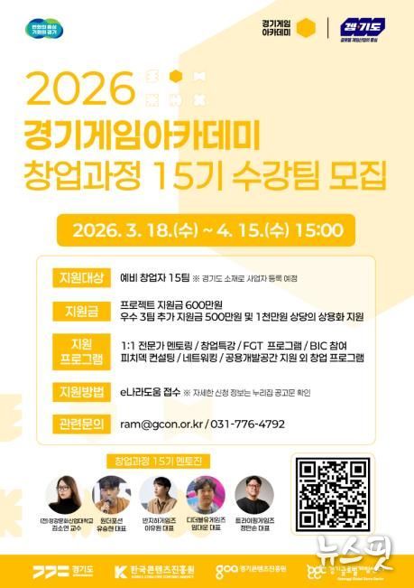(뉴스핏 = 김수진 기자) 경기도와 경기콘텐츠진흥원이 대한민국 게임산업의 미래를 이끌어갈 ‘2026 경기게임아카데미’ 창업과정 15기 수강생을 4월 15일까지 모집한다.