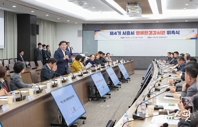 (뉴스핏 = 김수진 기자) 시흥시는 지난 27일 시청 글로벌센터에서 ‘제4기 시흥시 명예환경감시원 위촉식’을 열고 시민 참여 기반의 환경감시 활동을 본격 확대했다.
