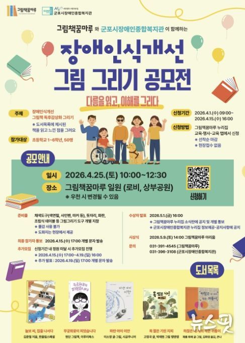 (뉴스핏 = 김수진 기자) 군포 그림책꿈마루와 군포시장애인종합복지관이 공동 주관하는 장애인식 개선 그림그리기 공모전이 오는 25일 10시부터 그림책꿈마루 로비 및 상부공원에서 진행될 예정이다.