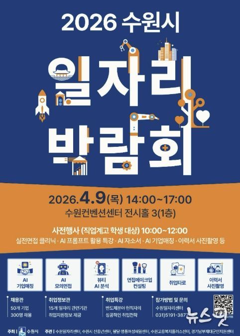 (뉴스핏 = 김수진 기자) 수원특례시는 9일 오후 2시부터 5시까지 수원컨벤션센터 전시홀에서 ‘2026 수원시 일자리박람회’를 개최한다.