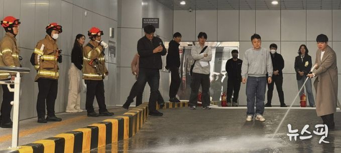 훈련은 화재 발생 시 행동 요령 교육을 시작으로 ▲연기 발생 상황을 가정한 대피 훈련 ▲교육용 소화기 사용 실습 ▲옥내 소화전 살수 실습 순으로 진행됐으며, 참가자들은 실제 화재 상황에 대비한 대응 능력을 체득했다.