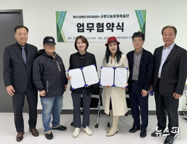 (뉴스핏 = 김호 기자) 광주시장애인가족지원센터는 지난 1일 비영리민간단체 사랑나눔문화예술단과 장애인 가족의 문화예술 향유 기회 확대와 삶의 질 향상을 위한 업무협약을 체결했다.