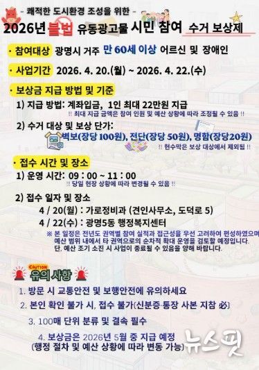 엄인봉 가로정비과장은 “불법광고물 수거보상제는 시민 자발적 참여로 행정력이 미치기 어려운 사각지대까지 세심하게 살필 수 있는 뜻깊은 사업”이라며 “시민 작은 실천이 모여 안전하고 쾌적한 도시 환경을 조성하는 밑거름이 되는 만큼 많은 관심과 동참을 바란다”고 밝혔다.