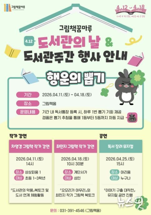 도서관 주간(4월 11일~18일) 동안 그림책꿈마루에서는 ▲작가와의 만남 ▲행운의 뽑기 ▲독서 장려 뮤지컬 공연과 같이 다양한 프로그램이 진행된다.