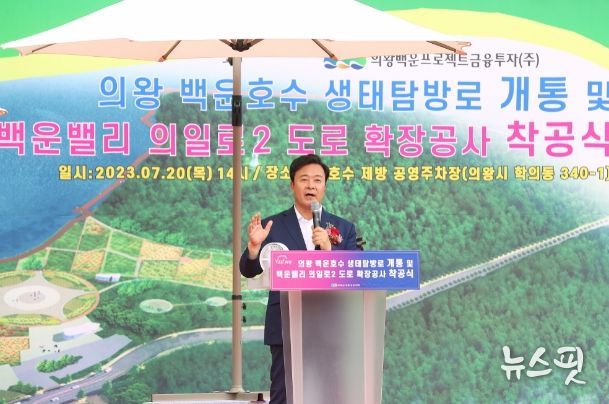 (뉴스핏 = 김호 기자) 의왕시는 20일 백운호수 일원 백운호수제방공영주차장에서 ‘백운호수 생태탐방로 개통 및 의일로2 도로 확장공사 착공식’을 개최했다고 밝혔다.