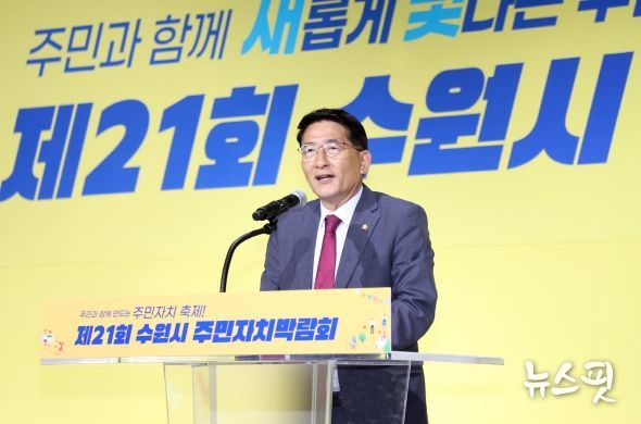 (뉴스핏 = 김호 기자) 수원특례시의회 김기정 의장은 26일 시 의원들과 함께 ‘제21회 수원시 주민자치박람회’에 참석하여 행사 개최를 축하했다.