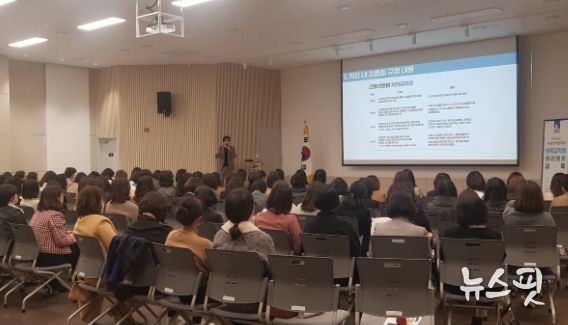 국공립어린이집 등 원장 93명이 참석한 이날 교육은 노무법인 테헤란 김민건 대표 공인노무사의 강연으로 진행됐다.