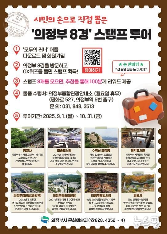 (뉴스핏 = 김호 기자) 의정부시는 9월 1일부터 10월 31일까지 2025년 하반기 ‘의정부8경 스탬프투어’를 개최해 시민과 관광객을 맞이한다.