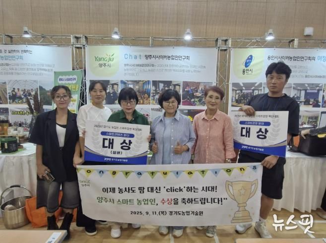 (뉴스핏 = 김호 기자) 양주시는 지난 11일 경기도농업기술원에서 열린 ‘2025년 경기도 농업인 스마트경영 혁신대회’에 참가한 양주시사이버농업인연구회가 스마트콘텐츠(고령) 분야와 스마트경영(개인) 분야에서 각각 대상을 수상했다고 밝혔다.