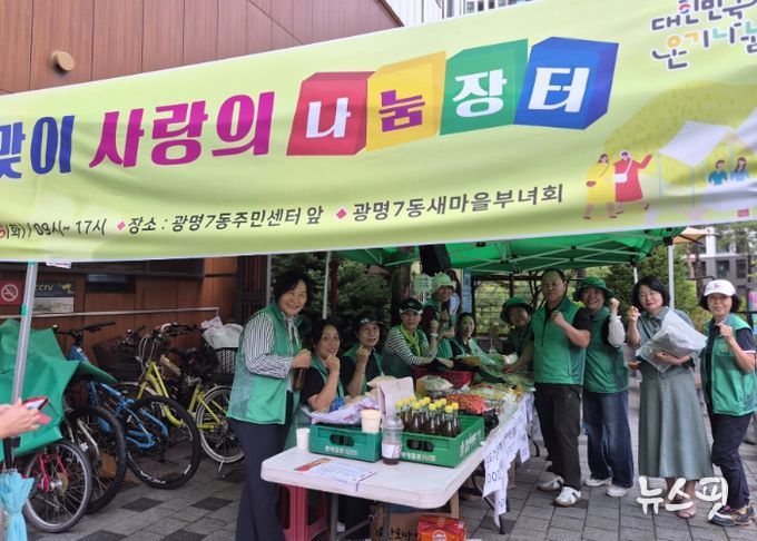 (뉴스핏 = 김호 기자) 광명시 광명7동 새마을부녀회는 지난 16일 광명7동 행정복지센터 앞에서 추석맞이 사랑의 나눔장터를 열었다.