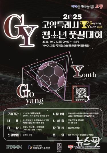(뉴스핏 = 김수진 기자) 고양시청소년재단 토당청소년수련관은 오는 10월 25일 YMCA 고양국제청소년문화센터 대운동장에서 ‘2025 고양특례시 청소년 풋살대회(GY컵)’를 개최한다고 밝혔다.