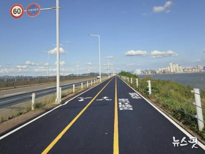 (뉴스핏 = 김수진 기자) 시흥시는 지난 8일부터 18일까지 시화호 방조제 자전거도로 3.8km 구간에 대한 재포장 및 도색 정비 공사를 완료했다.